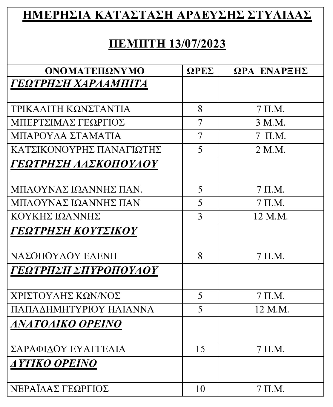 ΗΜΕΡΗΣΙΑ ΚΑΤΑΣΤΑΣΗ ΑΡΔΕΥΣΗΣ ΣΤΥΛΙΔΑΣ