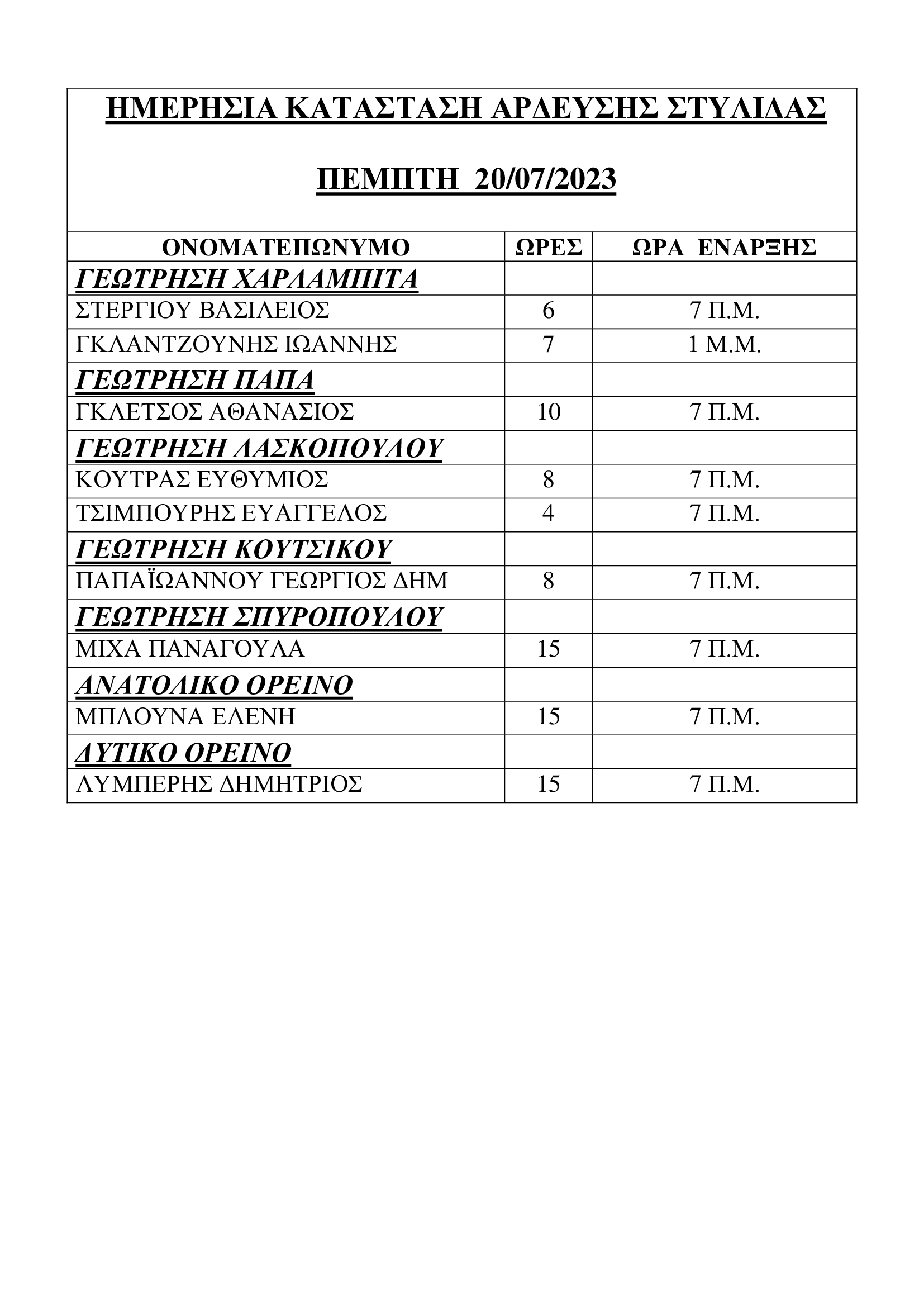 ΗΜΕΡΗΣΙΑ ΚΑΤΑΣΤΑΣΗ ΑΡΔΕΥΣΗΣ ΣΤΥΛΙΔΑΣ