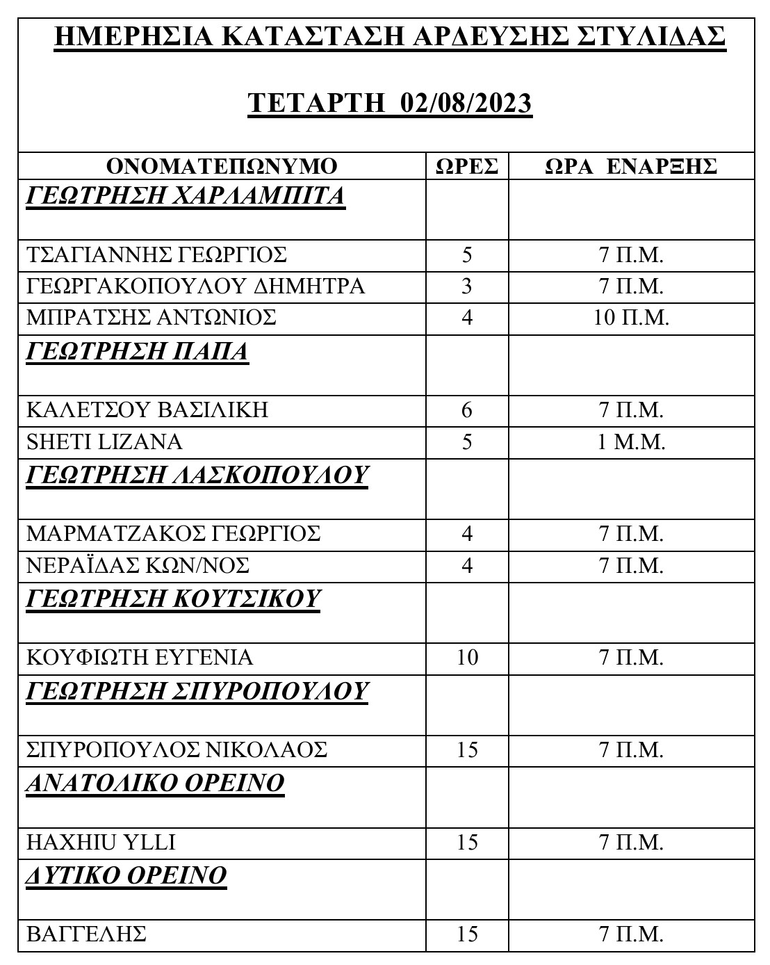 ΗΜΕΡΗΣΙΑ ΚΑΤΑΣΤΑΣΗ ΑΡΔΕΥΣΗΣ ΣΤΥΛΙΔΑΣ