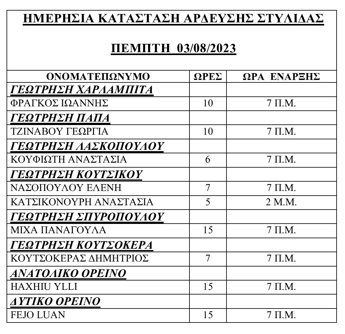 ΗΜΕΡΗΣΙΑ ΚΑΤΑΣΤΑΣΗ ΑΡΔΕΥΣΗΣ ΣΤΥΛΙΔΑΣ