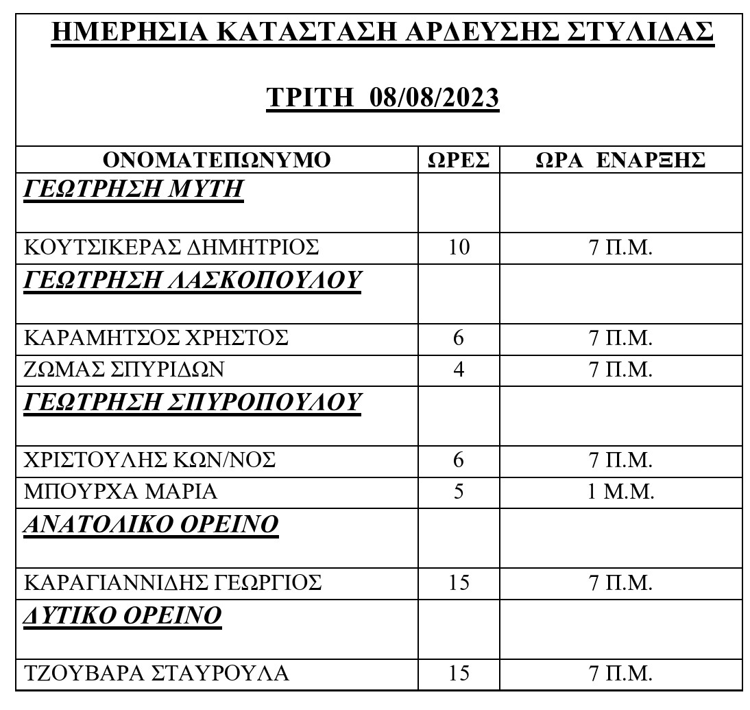 ΗΜΕΡΗΣΙΑ ΚΑΤΑΣΤΑΣΗ ΑΡΔΕΥΣΗΣ ΣΤΥΛΙΔΑΣ